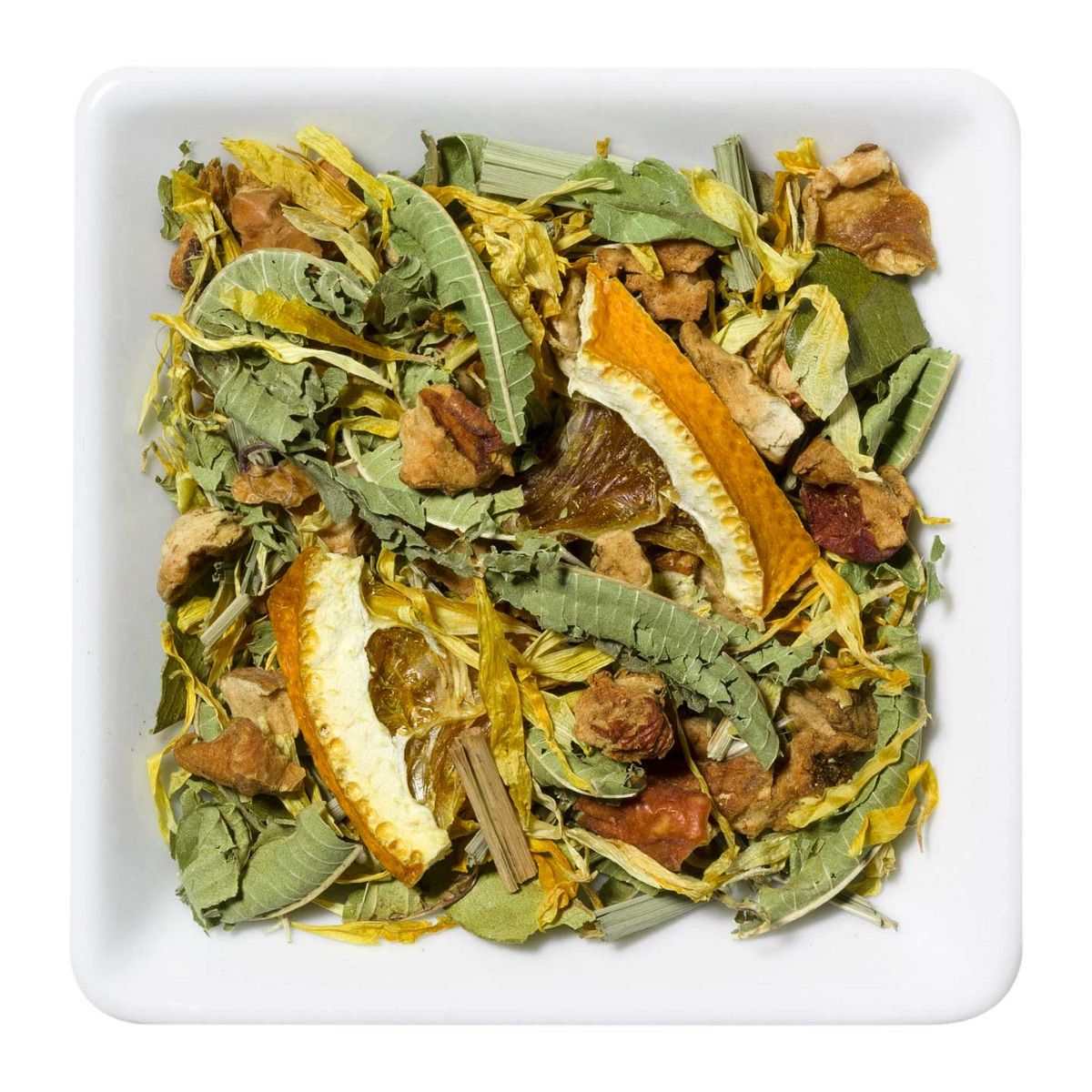 Deze klassieke, natuurlijke kruiden- en fruitmelange is zowel lust voor het oog als de tong. De smaak is citroenachtig, heerlijk zacht, maar ook fris. Laat de melange lekker lang trekken in kokend water. Het resultaat? Een bron van geluk in je kopje!